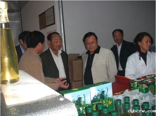 会后周会长参观了太湖茶油生产年企业,山里郎茶油有限公司。该公司是专业生产精制油茶籽油、茶油植脂末胶囊、茶皂素等高附加值系列产品。公司成立于2007年,座落在风景秀丽、盛产油茶的大别山脚下——安徽省太湖县经济技术开区。公司总投资6000万元,装备国内最先进、最完备的独具填料/层板组合脱臭塔,首家采用国内领先的脱臭技术,最大限度保留了茶油特有的品质,年生产高档精制茶油3000吨以上,高附加值产品15000吨以上,年产值2.7亿元。 ,