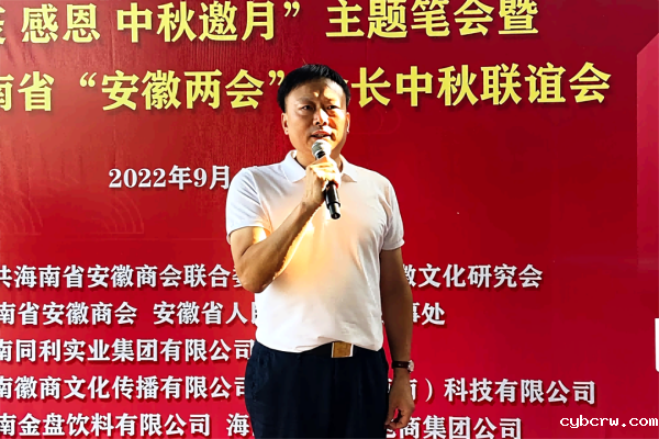 9月4日下午,海南省安徽商会联合党委、海南省徽文化研究会、海南省安徽商会、安徽省人民政府驻海南办事处联合举办的“抗疫感恩 中秋邀月”主题笔会暨2022海南省“安徽两会”会长中秋联谊会在海南省安徽商会陈健执行会长的后花园举行。海南省“安徽两会”名誉会长刘笃寿先生、宋攻文先生,海南省徽文化研究会会长周功民先生,海南省安徽商会会长汪方怀先生,海南省安徽商会联合党委书记吴皖民先生,中共安徽省驻琼企事业委员会书记、安徽省人民政府驻海南办事处主任张建成先生,奋战在抗疫一线的皖籍党政军有关领导,中共海南省安徽商会联合党委所属各支部书记,海南省皖系地市级商会会长以及部分海南省“安徽两会”执行会长和副会长出席会议。海南省“安徽两会”秘书长林月兵主持会议。