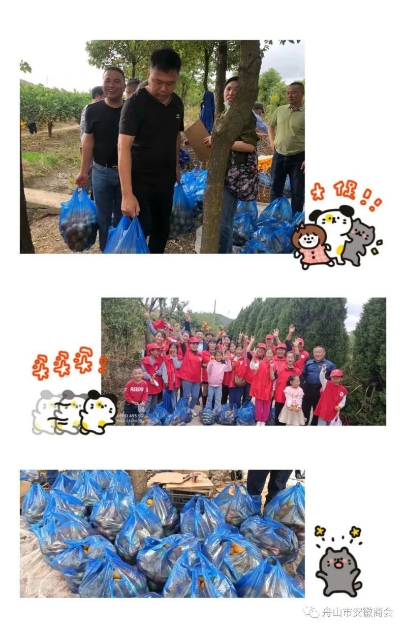 11月12日正好是周六,徐大伯的桔园里欢声笑语,大家做好疫情防控检查后,立即投入采摘桔子的战斗。舟山市安徽商会执行会长梅新义说:“我们商会和北海村是结对单位,我们有责任和义务把徐大伯滞销的桔子销出去,为他分忧解难。”