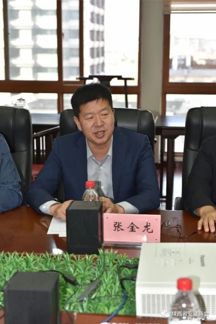 张金龙会长介绍了陕西省安徽商会的发展历程,乡村振兴、捐资助学、精准扶贫、获得荣誉、安徽大厦的建设等情况,他表示此行来访的主要目的是加强两会间的联系、希望以后能经常相互走动,共享信息资源,实现会员之间的互访和学习,为促进陕西、安徽、黑龙江三地经济发展做出新的贡献。共同探讨各自的管理模式进行,分享发展经验、相互交流推进,促进合作,共谋发展。今天我们常务副会长单位古井集团西安分公司还带来了家乡美酒,与各位共同品鉴,共叙友情。