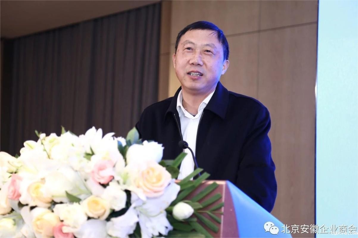 安徽省人民政府驻北京办事处副主任潘友庆在指导讲话中,对北京安徽企业商会十大新兴产业专业委员会的成立表示祝贺,对商会企业家一直以来对家乡安徽发展的关注、支持表示感谢,对商会多年来所作的工作和取得的成绩予以肯定。同时他要求,北京安徽企业商会要以十大新兴产业专业委员会的成立为契机,不忘初心,乘势而上。一是提振信心抢机遇。希望大家善于顶风行船,坚持以恒心办实业,以坚韧的意志和敏锐的市场洞察力,化危为机,抢抓先机,发挥平台优势,进一步加强团结协作,加强与国内外同类型企业和产业链上下游的对接合作,为企业发展壮大增添动力指数和安全系数;二是厚植乡情促发展。希望大家积极响应省委省政府号召,继续发挥好桥梁纽带、牵线搭桥作用,广泛宣传推荐安徽,吸引更多好项目、大项目落户安徽,引荐更多优秀人才到安徽创新创业,鼓励更多优秀企业家到安徽投资兴业,为现代化美好安徽建设立柱架梁贡献力量。三是服务社会讲奉献。希望在京安徽籍企业家秉承古徽商传统,永立新时代潮头,做爱国敬业、守法经营、创新创业、回报社会的新时代徽商。坚持企业发展与社会发展相统一,在就业创业上展现新担当,在诚实守信上展现新形象,在扶困济贫上展现新作为。