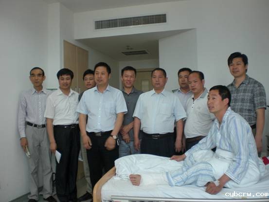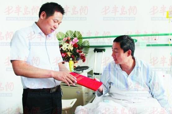 6月4日上午,烟台安徽商会会长吴照伟与徽商领导班子一行再次来到医院,除了赠予蒋兴保慰问金以外,烟台安徽商会正式决定授予蒋兴保同志商会“荣誉会员”称号,并颁发荣誉证书。