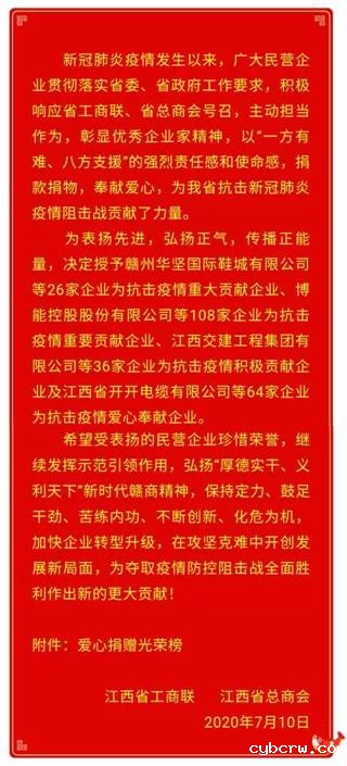 《关于对为江西抗击疫情爱心捐赠作出贡献的民营企业通报表扬的决定》