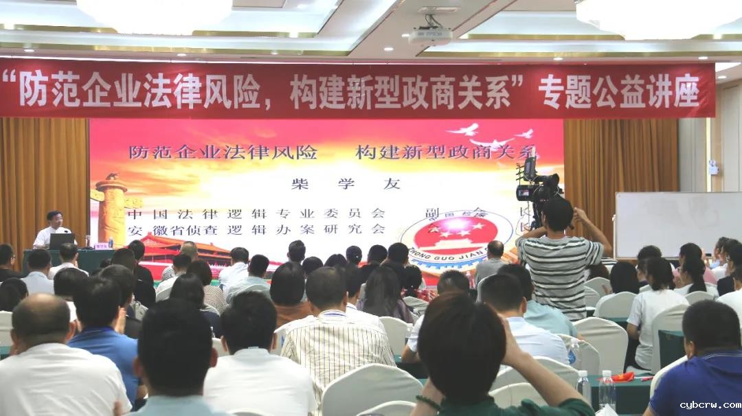 江西徽商在线消息: 7月26日,江西省安徽商会为认真学习贯彻落实习近平总书记在企业家座谈会上的讲话精神,营造企业“诚信守法”经营,构建新型政商关系的良好法治氛围,兴起“尊法、学法、守法、用法”的热潮。邀请了中国法律逻辑专业委员会副会长、安徽省侦查逻辑办案研究会会长柴学友作题为“防范企业法律风险,构建新型政商关系”的专题公益讲座。南昌市卫监执法局党委书记兼局长、江西财经大学BOSS商学院院长梁毅、安徽省侦查逻辑办案研究会办公室主任程国进参加活动。省政协委员、省安徽商会会长李井海出席专题公益讲座并讲话。