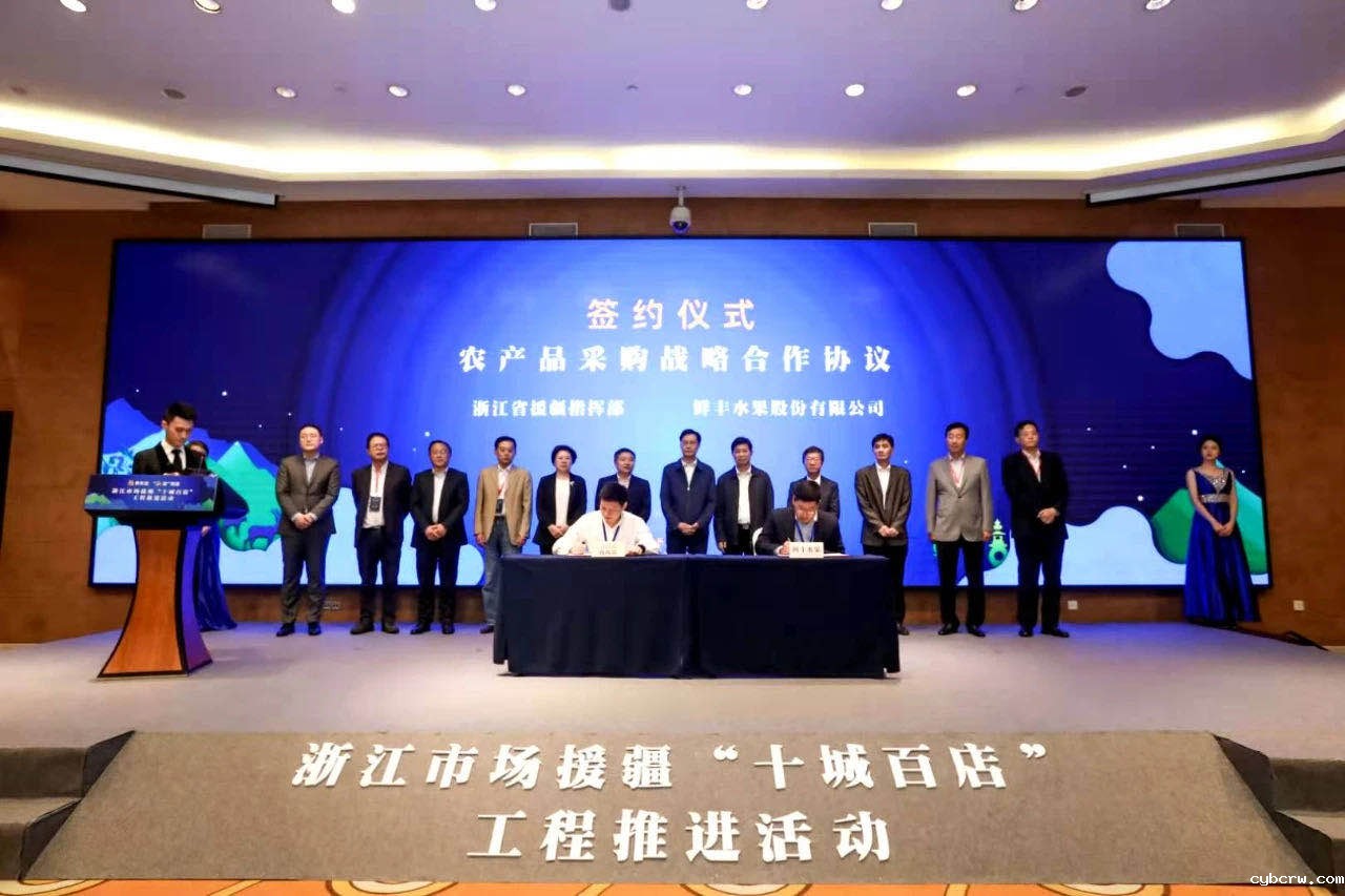 而就在昨天,浙江市场援疆“十城百店”工程推进会上,鲜丰水果与省援疆指挥部签署了农产品采购战略合作协议,将在3年内大力推广阿克苏优质林果并推广到鲜丰千家门店,切实帮助阿克苏地区果农脱贫增收。并通过一系列市场运营方式,将优质林果推向市场,助力阿克苏特色林果品牌化发展。