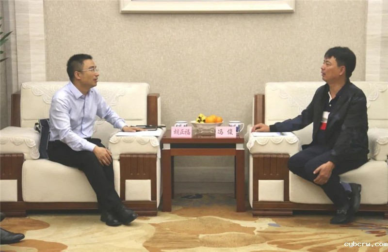 △江西省安徽商会副会长冯俊与胡正福副县长亲切交谈