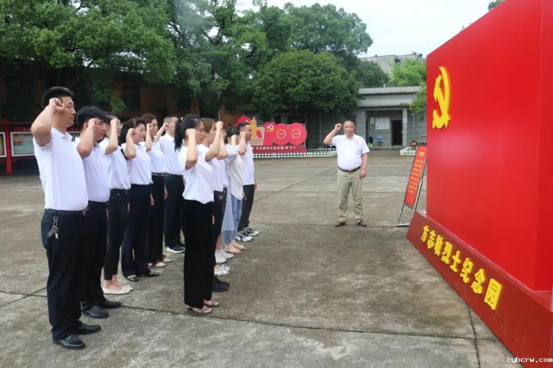 苍松翠柏慰英烈,巍巍丰碑载伟业。在方志敏烈士陵园,全体党员、入党积极分子来到人民英雄方志敏雕塑前,在烈士英魂的见证下,全体党员、入党积极分子面对鲜红的党旗,举起右拳,庄严宣誓,伴随着铿锵的誓言,每一名党员在这一刻精神得到了洗礼,“为共产主义奋斗终身”这句誓言,深深的牢记在每个人的心中,庄严而又响亮的宣誓声在烈士陵园内回响着。随后,大家踏过台阶怀着敬仰的心来到方志敏烈士墓前给人民英雄敬献花圈,并集体向英烈鞠躬默哀悼念革命先烈,以寄托对革命英烈的无尽哀思与深切怀念,深刻铭记中国共产党百年奋斗的光辉历程。
