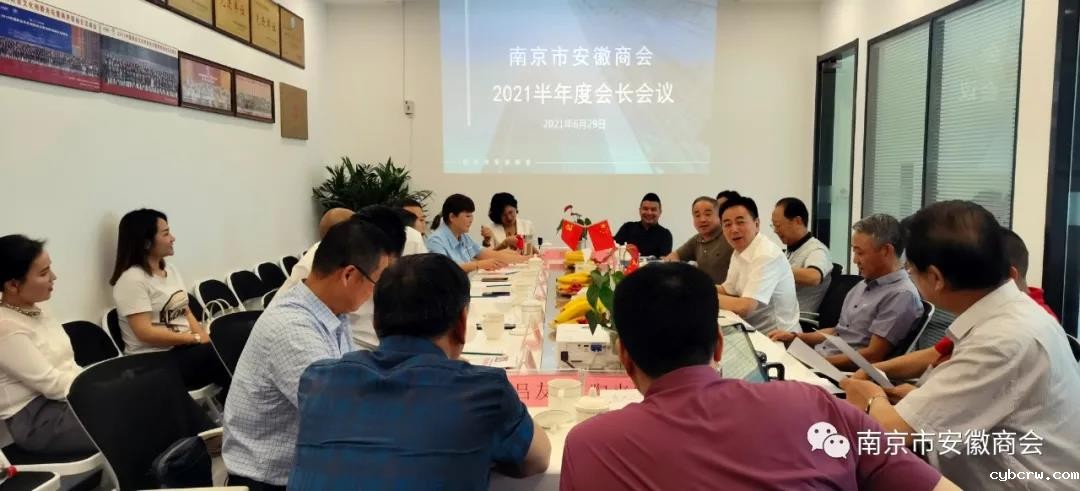 在中国共产党建党100周年华诞的前夕,6月29日下午,南京安徽商会2021年半年度会长会议在徽商大厦商会会议室召开。商会会长陈广川、轮值会长王传良、监事会主席沈长明,常务副会长沈彪、吴奇、刘虎、杨兴明、倪勇,秘书长周晓汉,监事会副主席戴新年,副会长刘朝金(党支部书记)、朱立广、吕德宝、陶来富、吕友邦、安东、徐凡、王慧、俞正新,副秘书长王凯蒂及秘书处工作人员参加会议。会议由陈广川会长主持。