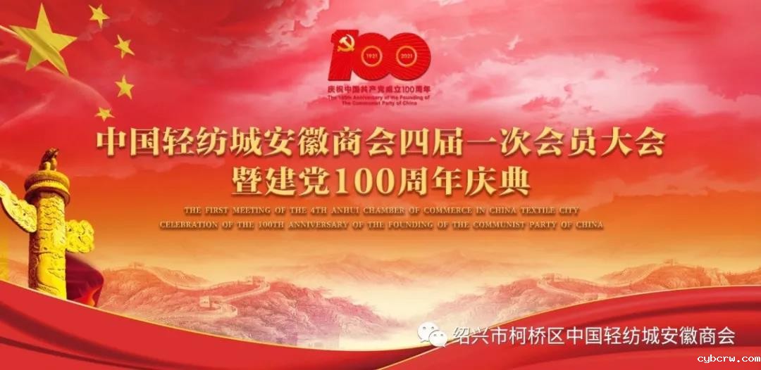 6月26日,中国轻纺城安徽商会四届一次会员大会暨建党100周年庆典活动在富丽华大酒店隆重召开。绍兴市柯桥区区委常委、统战部部长王静静,绍兴市柯桥区工商联主席陈瑾,绍兴市柯桥区妇联主席于琪,绍兴市军分区原司令员刘德萃,绍兴市军分区原司令员王干银,工商银行总行交易银行中心主任唐亮,绍兴市中心医院党委书记马高祥,工商银行绍兴支行党委书记、行长董晓江,绍兴市柯桥区工商联、绍兴市柯桥区民政局等相关部门领导及各界嘉宾和会员代表600余人出席了本次换届大会和建党100周年庆典活动。