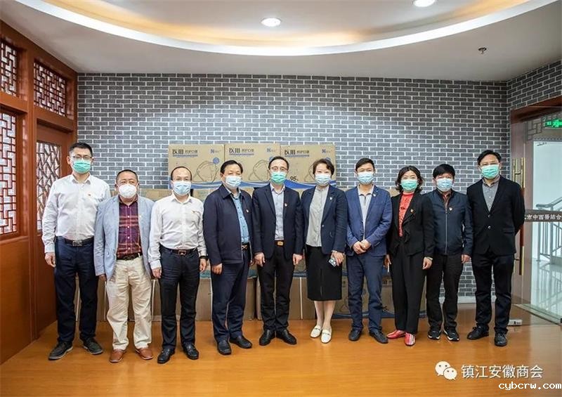 4月26日上午,镇江市政协常委、工商联副主席、安徽商会会长艾学平,市政协常委、常务副会长封孝权,新区政协委员、党支部书记、常务副会长朱永梅,常务副会长杨伟、副会长曹刚、理事付国发一行,代表安徽商会向镇江市中西医结合医院捐赠一批医用抗疫物资,并表达对医护人员的慰问和敬意。