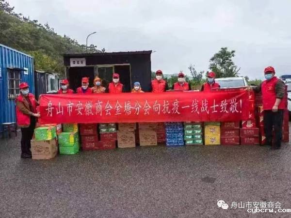 在继舟山市安徽商会总会、岱山分会分别为金塘卡点和舟岱大桥卡点送去慰问物资后,5月12日,舟山市安徽商会金塘分会的志愿者,为金塘的沥港高速出口卡口的防疫人员捐赠了18000余元的防疫物资。
