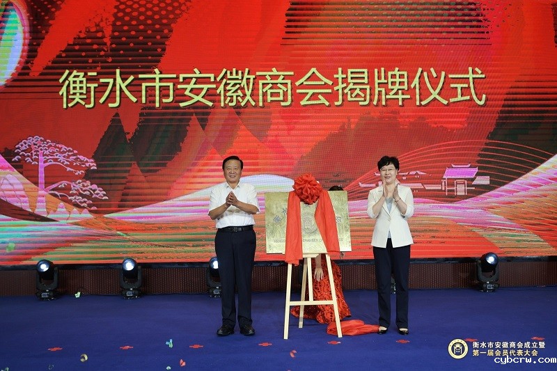 ↑衡水市委常委、统战部长申文霞,bv伟德体育app高咨委、合肥市政协原主席周富如为衡水市安徽商会揭牌