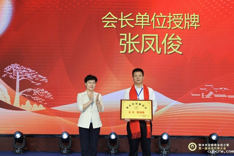 ↑衡水市委常委、统战部长申文霞为会长单位授牌