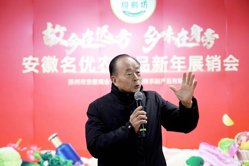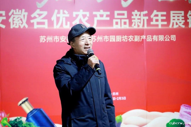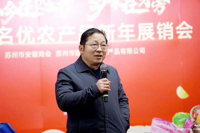 苏州市安徽商会监事长丁学长在致辞中表示,新年来临之际商会举办一场别开生面的安徽名优农产品展销会,这不仅对推动安徽农产品的品牌形象和市场拓展具有重要意义,也为苏州市民提供了多元化的购物选择和健康饮食的平台。