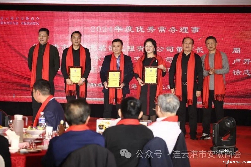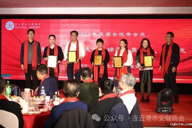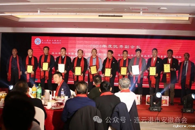 年会上,商会顾问亲自为荣获2024年度连云港市安徽商会表彰的“2024优秀会员”、“2024优秀常务理事”、“2024优秀副会长”、“2024突出贡献奖”等19人授牌颁奖。