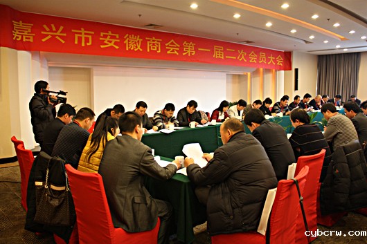 下午3时嘉兴市安徽商会一届二次会员大会正式开始。嘉兴市民政局社会组织管理局局长蒋海莹,嘉兴市工商联合会秘书长王国荣等同志参加了会员大会。常务副会长吕焕志同志代表商会作《嘉兴市安徽商会2009年工作报告及2010年工作计划》报告;秘书长罗祥先同志作《2009年嘉兴市安徽商会财务报告》。会长刘业政同志在会上就服务会员企业、打造“会员之家”,结合各会员实际、开展各种针对性活动,根据市场需要、开展经营性活动,加强商会造血功能等进行了总结讲话。会上会员们还针对如何加强商会工作进行了热烈讨论和交流。