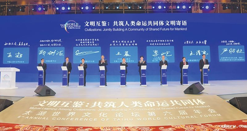王晨表示,太湖世界文化论坛是中国创立的高层次国际文化论坛,要发挥好促进不同文明互学互鉴重要平台作用,为加强世界文化交流和文明互鉴,促进和谐共生,共绘美美与共的文明画卷作出贡献。