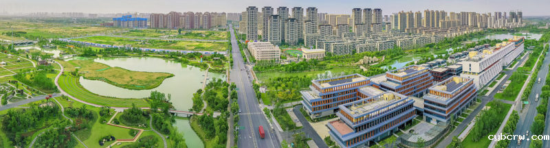 园区围绕南部生产、中间生态、北部生活,利用天然水系打造横亘东西8公里"五湖四海”生态轴,高起点完善区域配套、城市社区治理、 邻里服务功能,构建“三生融合、三线并展”的空间形态,就近为产业人才提供生产生活保障。