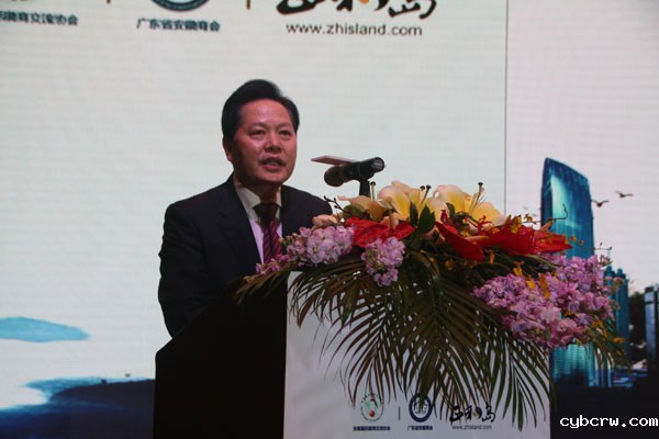 主办方代表广东省安徽商会会长王文银、正和岛创始人刘东华、安徽省人大常委会副秘书长史涤云、安徽省人民政府驻广州办事处主任朱丹发表了致辞,安徽省合作交流办公室主任方宏胜作了讲话,苏宁环球集团董事长张桂平和至正文博集团董事长吴福庆分别作了精彩的演讲。