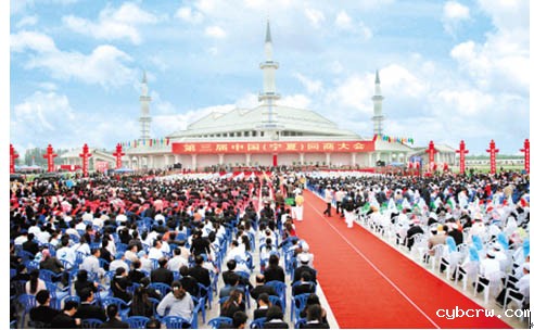 金色九月的吴忠,秋风送爽,瓜果飘香。2010第三届回商大会于9月25日在回族之乡的吴忠市红宝宾馆盛大召开。来自巴勒斯坦、沙特、埃及等国贵宾及国内、区内各界12700名代表参加了开幕式。在当日回商大会的开幕仪式上,新建的吴忠伊斯兰文化中心作为回商大会的永久会址,正式揭牌。在为期两天的第三届中国(宁夏)回商大会中,与会代表围绕清真产业、穆斯林文化及回商经贸等领域展开深入的交流合作。还开展了清真食品穆斯林用品展示展销会、中国(吴忠)穆斯林书法美术摄影展、中国(吴忠)回医回药文化展、吴忠清真美食节、“黄河金岸”文化旅游节、回商商会与友好商会合作推进会暨项目签约仪式等一系列活动。