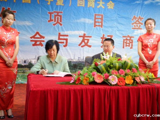 在“签约仪式”上,国际徽商交流协会驻会副会长宋菊英与吴忠回商商会会长张东国签定了“友好商会协议书”并做了发言。双方希望通过此份协议进一步加强两地商会的交流,增强两地经济贸易合作,促进两地的经济发展。