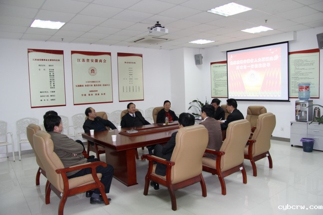 2011年11月16日下午,安徽省人大原副主任、bv伟德体育app会长周本立,安徽省政府原副秘书长、办公厅主任、安徽省企业联合会常务副会长梁热,在江苏省安徽商会常务副会长赵伟和南京第一有机光电有限公司董事长吴晓明的陪同下,前往江苏省安徽商会考察。江苏省安徽商会秘书长宛明星、常务副秘书长张孟龙、金佳荣、庞自武、吴祖建、谢长美等给予热情接待。