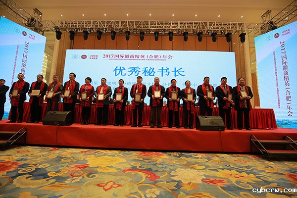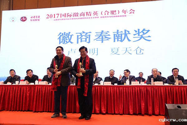会议表彰了20家先进徽商商会秘书处和14位优秀秘书长。广西商会原秘书长卢光明,陕西安徽商会原秘书长夏天仓荣获“徽商奉献奖”。