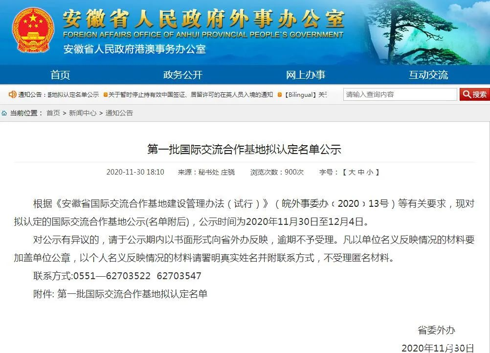 2020年 11月30日,安徽省外办通过官网发布《第一批国际交流合作基地拟认定名单公示》,我会常务副会长单位安徽古井集团有限责任公司荣登榜单,成为安徽省首批国际交流合作基地之一!