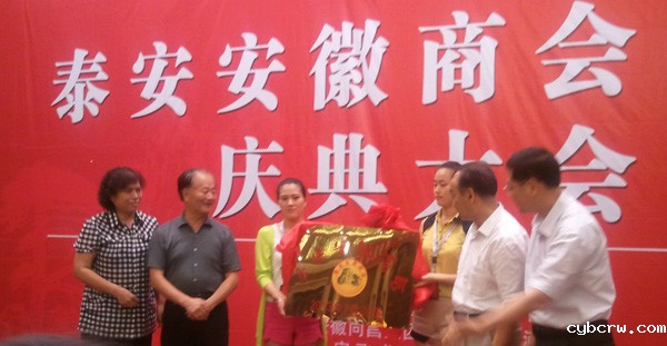 我会周本立会长,山东省军区原副政委幸胜标将军,泰安市委常委、副市长徐国乔,泰安市政协副主席、工商联主席王淑玲为泰安安徽商会揭牌。