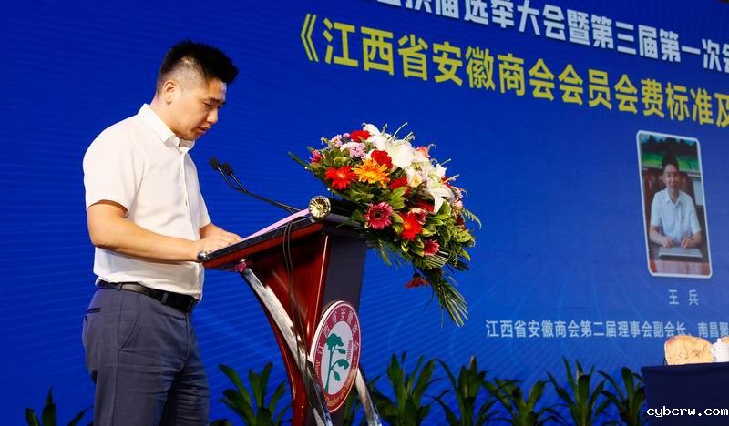 王兵向大会作《江西省安徽商会会员会费标准及管理办法》