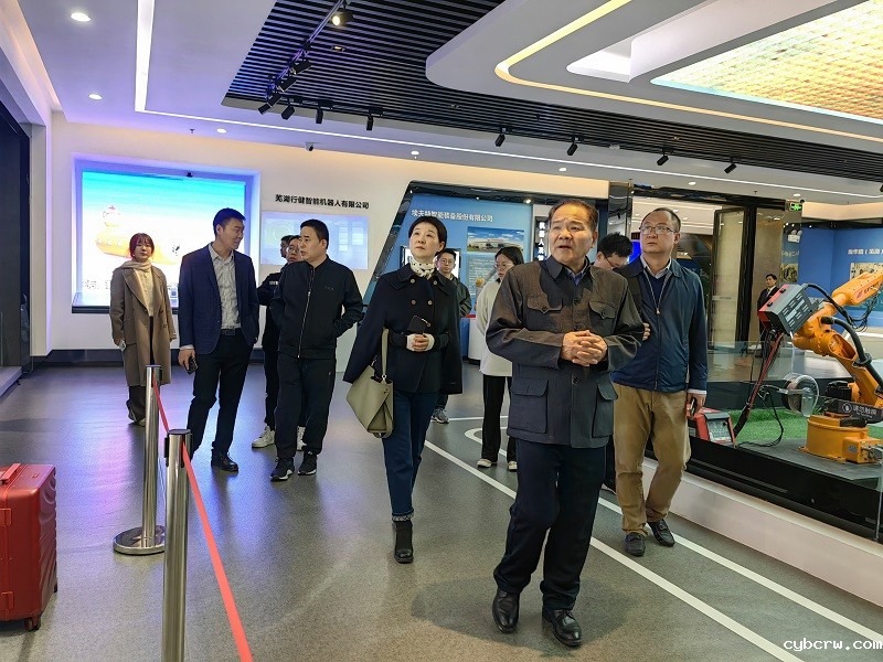 会前,叶青松一行参观了芜湖市产业创新馆,了解芜湖市城市变迁和近年来在各行各业中的创新成就。