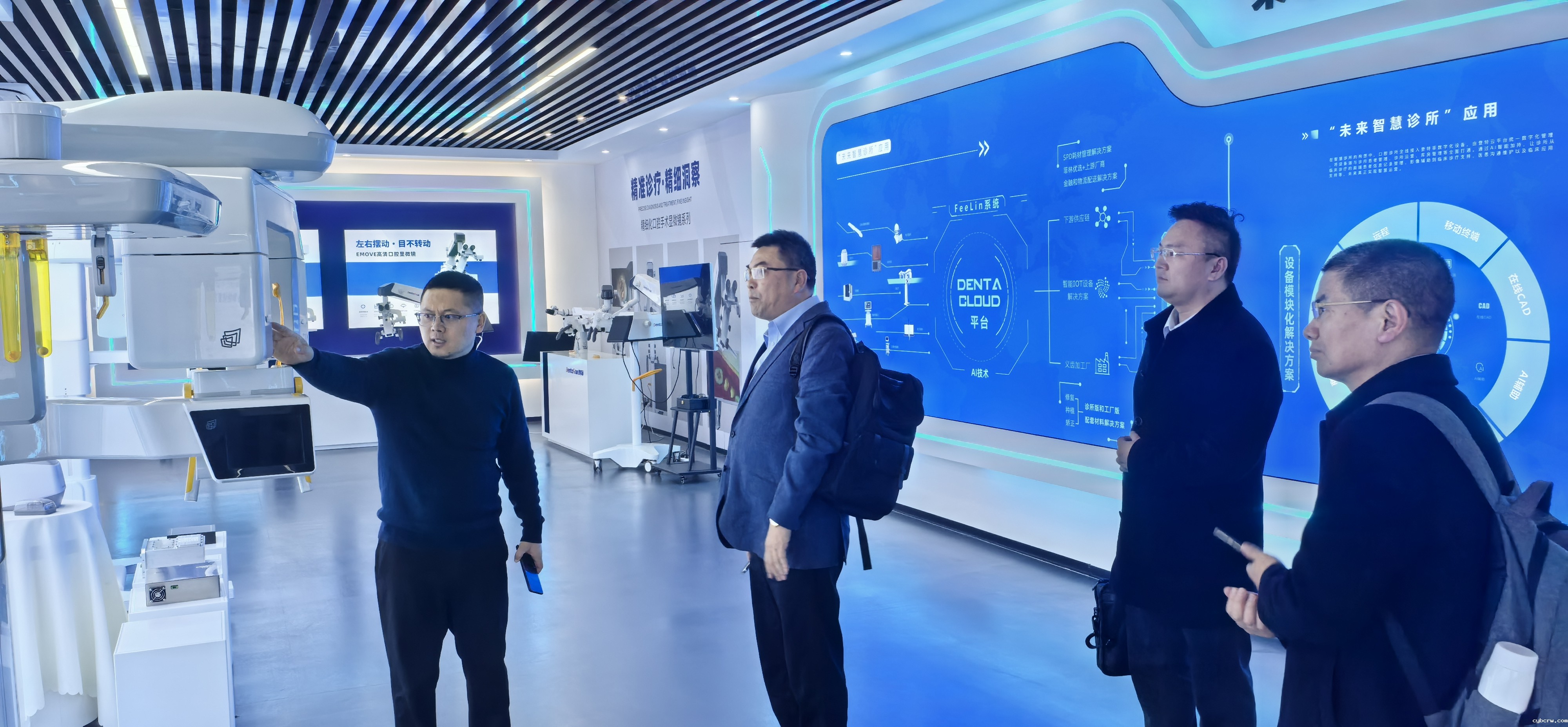 赵祉江一行还实地参观了登特菲数字展厅,亲身体验了AI影像诊断系统、智慧诊疗平台及智能硬件等创新产品。黄开先董事长详细介绍了登特菲围绕“设备+云+AI”构建的数字生态,以及如何通过人工智能技术为医疗机构提供完整的数字诊疗整体解决方案,加速医疗均质化,提升整体诊疗能力。
